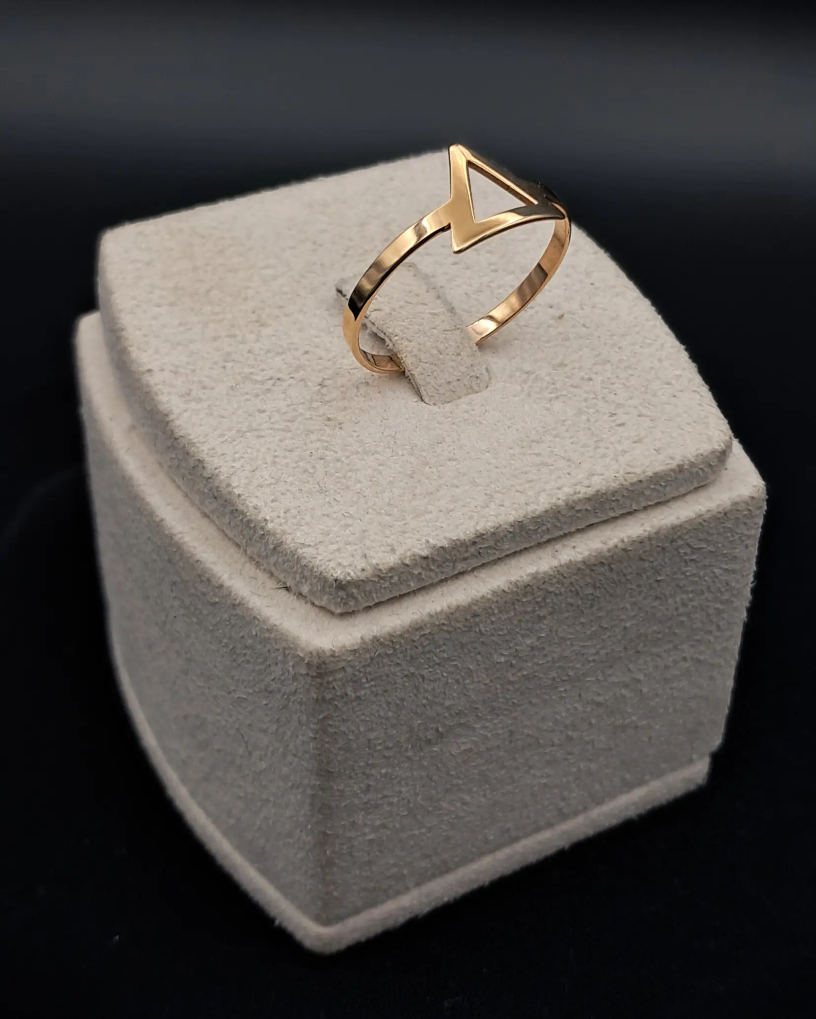 انگشتر مینیمال مثلث، انگشتر مینیمال مثلث ما، بیانی از هندسه‌ای گویا و قدرتمند است که نماد استحکام، تعادل و زیبایی مدرن را در خود جای داده. با وزنی باورنکردنی، تنها ۰.۹۳۰ گرم (کمتر از یک گرم)، به سبکی هوشمندانه و پایدار بر انگشتان شما می‌نشیند، اما درخشش مستحکم و همیشگی طلای ۱۸ عیار آن، یادآور دوام و اصالت است. این زیبایی هندسی، با اجرت منصفانه تنها ۵٪، هنری دست‌ساز و ارزشمند است که جلوه‌ای از سادگی پرمعنا و استایل مدرن را به ظاهر شما می‌بخشد و هر روز یادآور قدرت درونی و تعادل شماست.